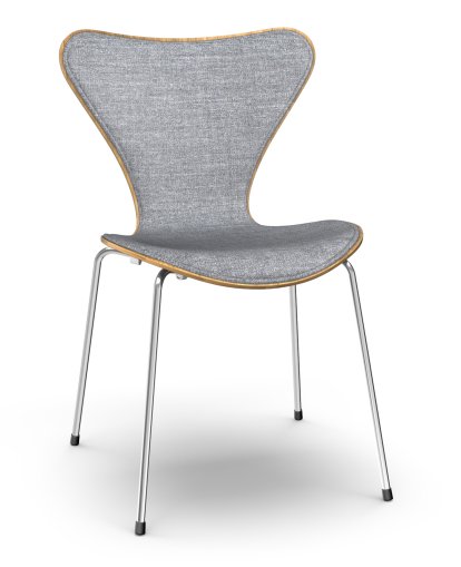 Series 7 Chair 3107 Front Upholstered, Clear varnished wood, Natural oak, Remix 143 - Grey, Chrome