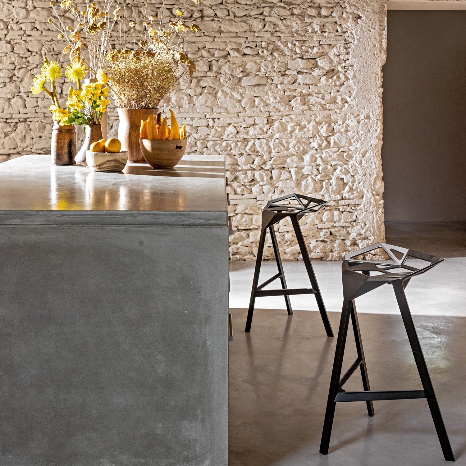 When selecting a bar stool it is important to pay attention to the height of the object in relation to the kitchen island or table. And also the size of the user: choose a high, height-adjustable stool such as the Spoon bar stool from Kartell for small (and large) sitters. Bar stools with footrests are also particularly comfortable. A bar stool with a backrest offers the opportunity to lean back, which gives a feeling of security while also providing more comfort.