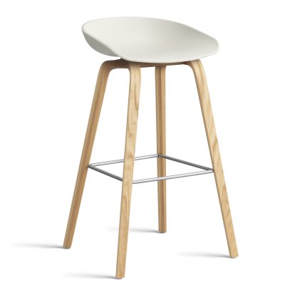About A Stool AAS 32, Bar version: seat height 74 cm, Lacquered oak, Melange cream 2.0