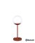 | Function & Properties | Suitable for outdoor use (in dry conditions) UV-resistant Light temperatures: 3000 K (warm white) and 6000 K (cold white) Dimmable in two warm (3000 K) and two cold (6000 K) brightness levels H 41 cm: 2.5 watt LED 150 lm On/off button on the foot (incl. Dimming function) Battery life: up to 16 h Rechargeable via USB (7 h) directly via the luminaire base H 63 cm: 7 watt LED 500 lm Switch on/off & dimming function by touching the turntable (version of the diffuser) or via the remote-controlled Bluetooth function "Fermob lighting" by smartphone (save lighting mood, view battery level) Battery life: up to 13 hours Rechargeable via charging base (4 h) |