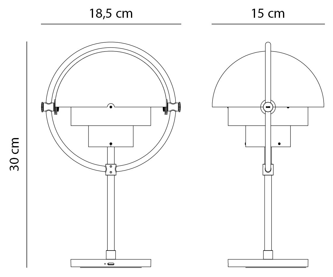 The Gubi Multi-Lite rechargeable lamp is based on the iconic design by Louis Weisdorf from 1972 and was reinterpreted in 2023 as a flexible, cordless version. The characteristic design is characterised by two opposing, movable outer shells that can be rotated individually to direct the light upwards, downwards or asymmetrically. Thanks to its portability and timeless mid-century style, it can be used in a variety of ways as an atmospheric accent on side tables, on shelves or even in sheltered outdoor areas.
