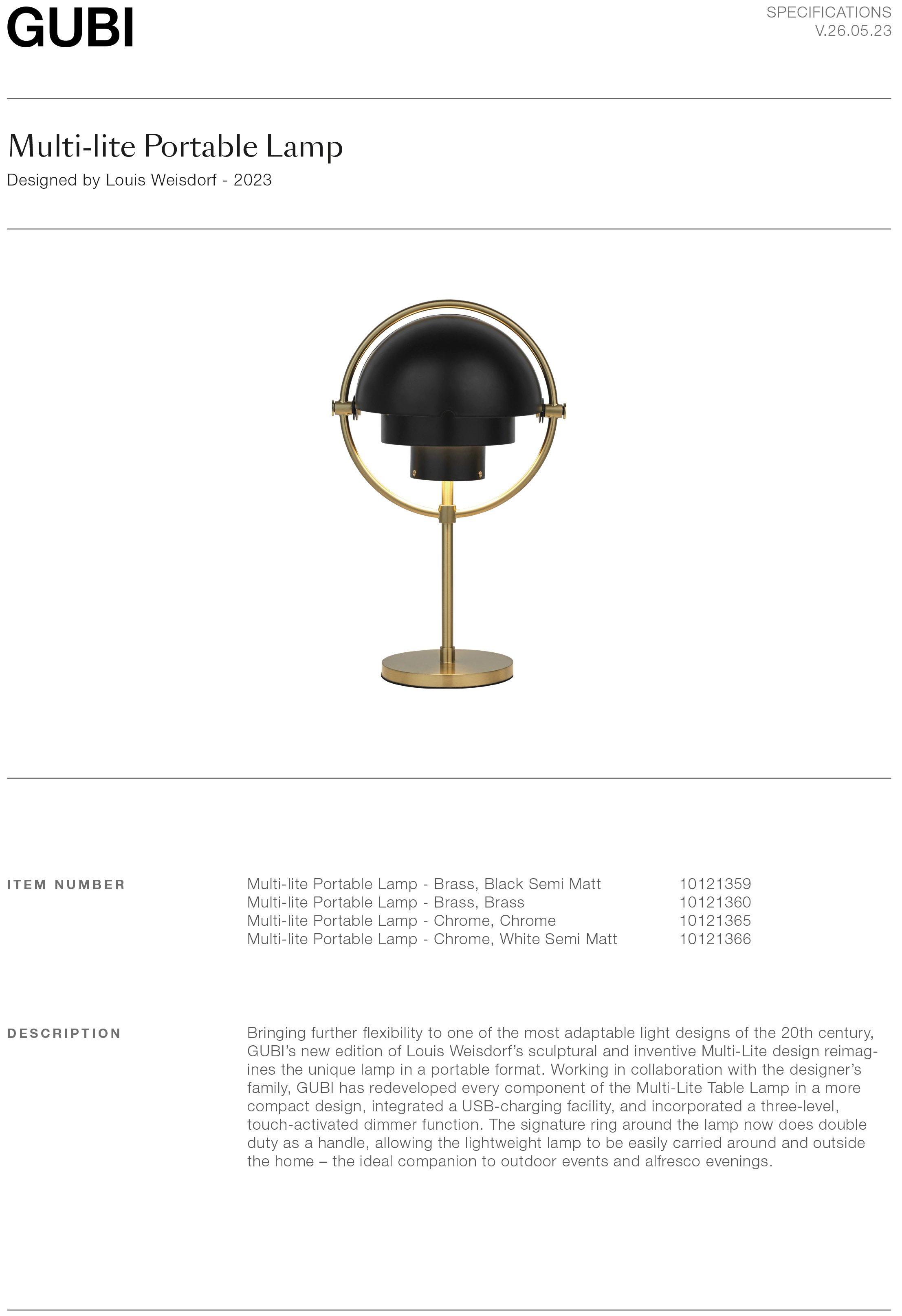 | Product family | Also available as Multi-Lite floor lamp and Multi-Lite pendant light. |