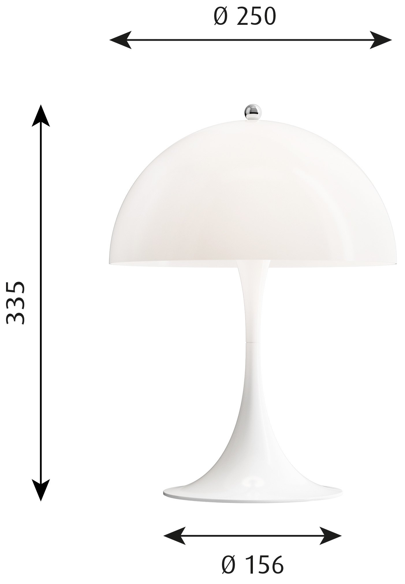 | Material | Colour: Opalescent acrylic or opaque polycarbonate, glossy Base and housing (lacquered): Injection moulded polycarbonate Base and housing (chrome-plated): Injection moulded ABS Diffuser: Opalescent polycarbonate |