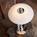 | Material | Shade: opal glass, mouth-blown, white Base and support: brass, metallized or high-gloss chrome-plated |