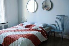 In addition to colours, materials and functional furniture, lighting plays an important role in the bedroom, for all variable lighting: while daylight is preferred in the morning, a subdued lighting mood is appropriate in the evening. Bedside lamps by Louis Poulsen, Hay or Muuto set aesthetic accents and provide enough light for reading, while accessories and home textiles such as blankets, rugs or curtains offer versatile design options and ensure a harmonious, cosy atmosphere.