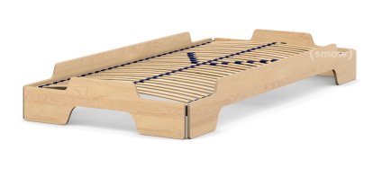 Designed in 1966 by Rolf Heide the Stapelliege with its mix of aesthetics and almost unique functionality remains as relevant and interesting today as ever. The bed's curved sides loosen the atmosphere in every and any bedroom while at the same time bestowing the object its special functionality - its stackability. Depending on the required use several Stapelliege beds can be stacked upon each other - or used individually - and thus afford a comfortable bed height: and which can be taken apart and reassembled if required and as often as required. In addition the beds curved organic edges make it particularly suitable for children's rooms, or rooms where children are likely to be found - the absence of sharp corners and edges reducing the risk of harm. The appealing, easily accessible form of the Müller Small Living stacking bed is space-saving and at the same time stable. Available in different types of wood and finishes the Stapelliege bed compliments virtually any style and was thus rightly described by the magazine "Home Sweet Home" as a modern classic.