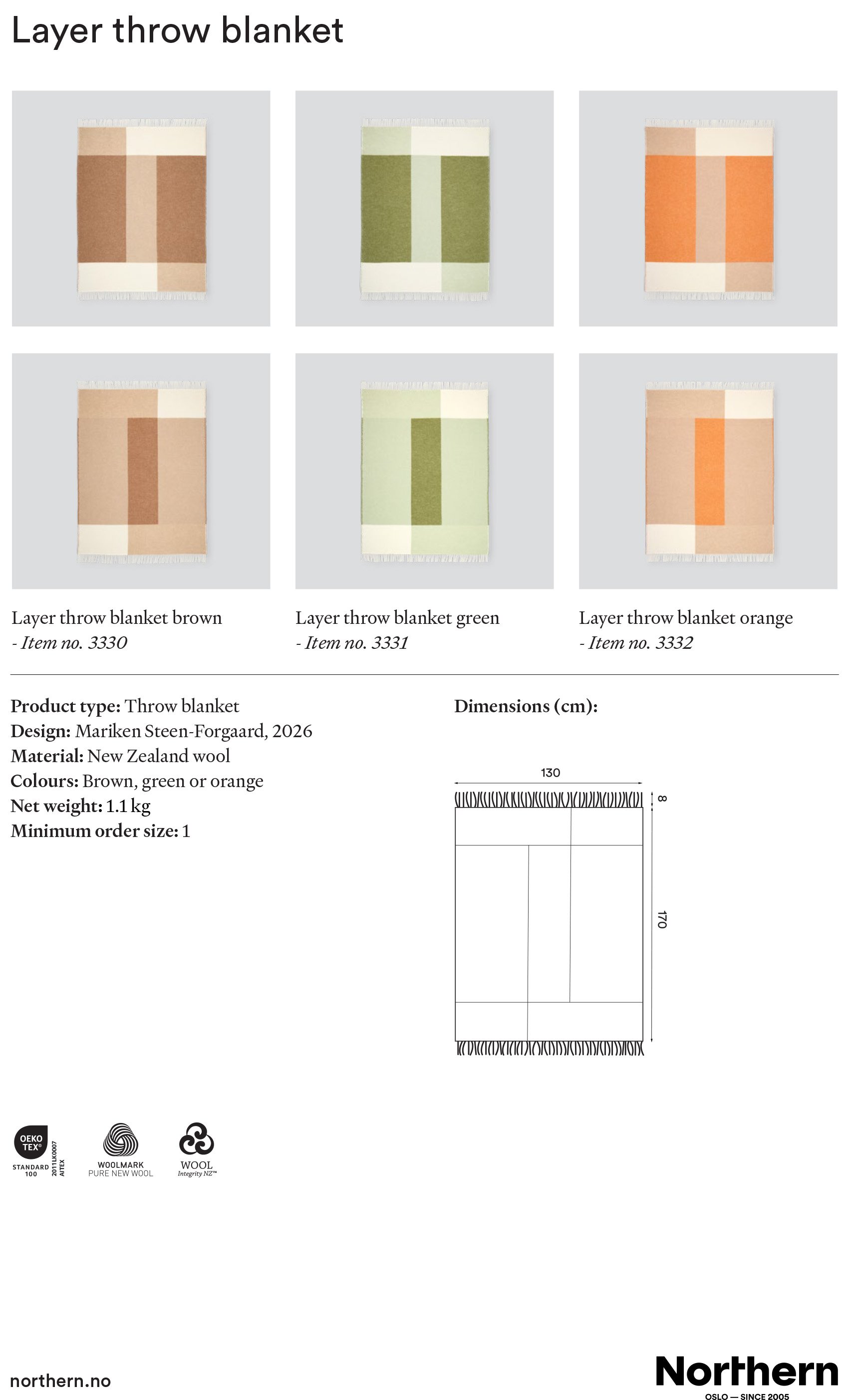The Layer blanket from Northern, designed by Mariken Steen-Forgaard, impresses with its multi-layered woven structure and a harmonious interplay of subtle colour nuances. The high-quality blend of wool and cotton gives the textile a pleasant feel and a soft, flowing touch. Thanks to its well-balanced texture, it is an ideal year-round accessory that will impress both in the bedroom and as an elegant throw in minimalist living concepts.