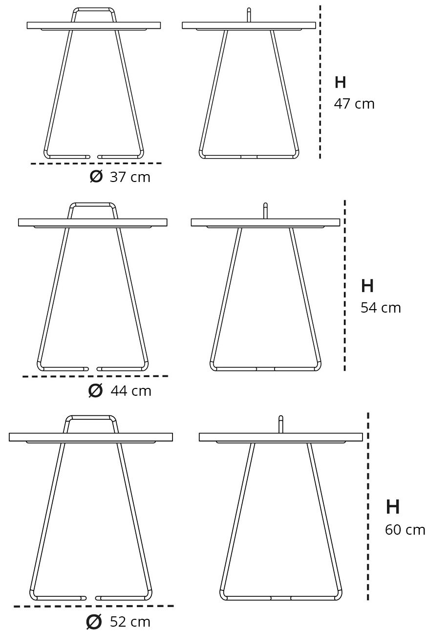 Available in three different sizes, the table can be placed anywhere at any time thanks to the large top handle.