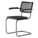 | Material | Frame: Tubular steel, glossy Seat and backrest: Leather with exposed wooden frame or cane weave (with plastic support mesh under the seat) Frame and armrests: Beech with high-gloss varnish |