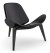 CH07 Shell Chair, Black lacquered oak, Leather black