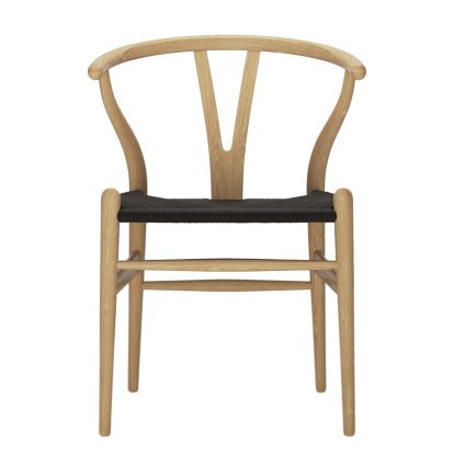 Since its creation in 1949 the CH24 Wishbone Chair has been produced by the Danish company Carl Hansen & Son. Originally produced in Odense, production moved to Aarup in 2003 following construction of a modern production facility. All solid wood parts for the CH24 chair are cut and assembled by hand; the seat is braided from 120 meters of paper cord, a material characterized by its enormous resistance and durability and which also has a pleasant feel and a natural colour. In addition to high demands on the quality of the materials and their sustainability, the combination of traditional carpentry with modern technology forms the central, guiding, principles of Carl Hansen & Søns's production: principles which guarantee the quality and durability of Carl Hansen Y chair.