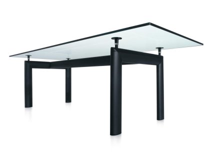 The LC6 Table was designed by Le Corbusier in collaboration with his cousin Pierre Jeanneret and the young designer Charlotte Perriand in 1928 and is today produced according to their original designs by the Italian manufacturer Cassina. Cassina own the exclusive rights to the entire series LC and guarantees the originality of all products through the embossing of all frames with their logo, the designers signature and an identification number. With the LC Collection Le Corbusier and his colleagues achieved a family of perfectly shaped and highly functional furniture which can be used in many contexts in public, commercial, domestic and business spaces and provides for contemporary and coordinated visual landscapes. Characteristic of the LC Collection is the combination of industrial materials with natural materials and industrial processes with traditional craftsmanship. The Cassina LC6 features a steel base in which the steel tubes are rounded in profile as in aviation, and which thus resemble the spacers between the wings of a biplane. This technical finesse, as with the thread via which the height of the table can be changed by up to 5 cm, is a pleasing eye-catcher.