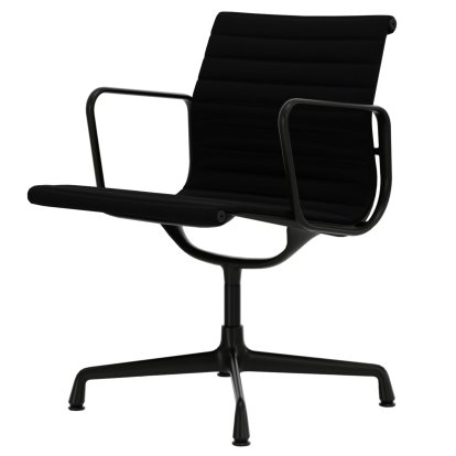 The EA 107 / EA 108 chairs are the result of a contract Charles and Ray Eames' received from their long-time friend the architect Eero Saarinen in the mid-1950s. He was looking for a quality chair for the exterior of the private home of Herman Miller, a house which he had designed in collaboration with Alexander Girard. Following a prolonged development phase Charles and Ray Eames presented the first prototypes of their Aluminium Chairs, which were designed as a whole series based on the same principle: seat and back form two cast aluminium side panels, between which are stretched the leather or fabric. The "cover" is thus no external wrapping, but a fundamental part of the design. The shape of the side panels is based in turn on the human spine, so that the Eames EA 108 optimally adapts to the body shape of the person sitting. The Vitra EA 108 Aluminium Chair has a medium-high backrest and armrests and is. in contrast to the externally identical Vitra EA 107, rotatable. The EA 108 and EA 107 Aluminium Chair are particularly suitable as an elegant and prestigious conference chairs, but they also fit effortlessly into living rooms.
