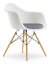 The wooden legs of the Vitra Eames DAW are stained maple. The old reddish stained version was produced until the end of 2008 and is no longer available. Since 2009 the maple wood has been stained yellow. In 2013 Vitra also released dark maple and black maple versions and in 2016 added a honey stained ash version.