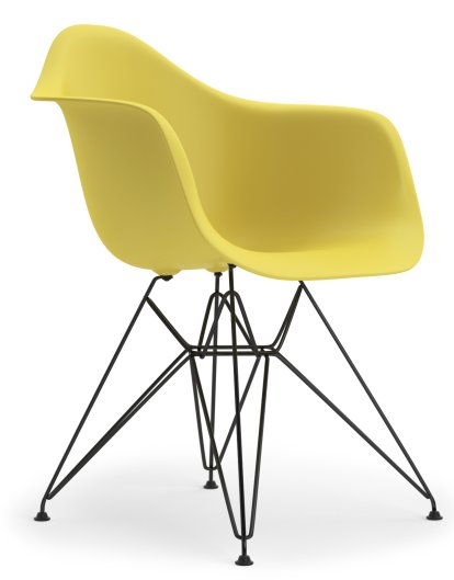 fibreglass reinforced polyester resin. In addition to its easy formability and flexibility the new material also had the advantages of presenting a pleasant feel and coming in at a cheaper price. With the plastic chair family Charles and Ray Eames also reached one of their central aims as a furniture designers "The most of the best to the greatest number of people for the least" Today, the Eames DAR, as with all the Eames plastic armchairs and Eames plastic side chairs are made from polypropylene. DAR stands for Dining Height Armchair Rod Base, which refers to a dining room chair with armrests and four-star base made of wire bracing.