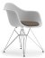 Eames Plastic Armchair RE DAR, Cotton white, With seat upholstery, Warm grey / moor brown, Standard version - 43 cm, Chrome-plated