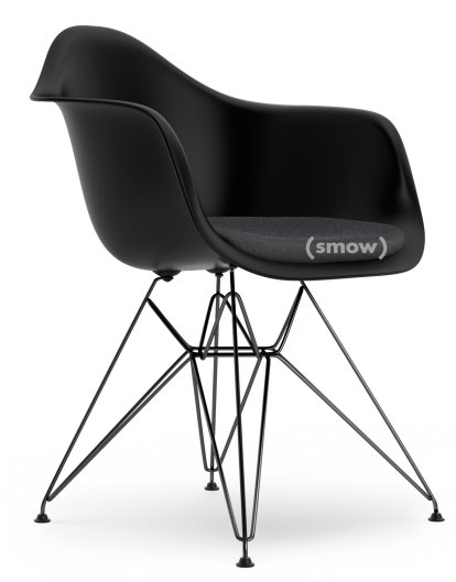 Eames Plastic Armchair RE DAR, Deep black, With seat upholstery, Dark grey, Standard version - 43 cm, Coated basic dark