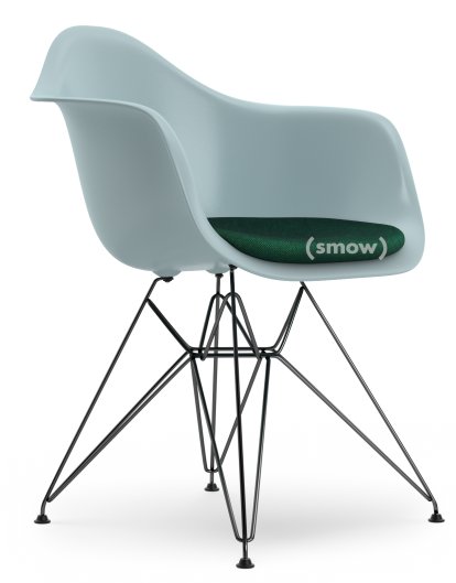Eames Plastic Armchair RE DAR Ice grey|With seat upholstery|Mint / forest|Standard version - 43 cm|Coated basic dark
