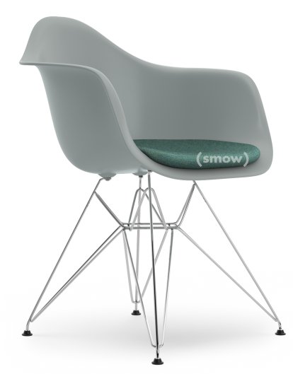 Eames Plastic Armchair RE DAR, Light grey, With seat upholstery, Ice blue / ivory, Standard version - 43 cm, Chrome-plated