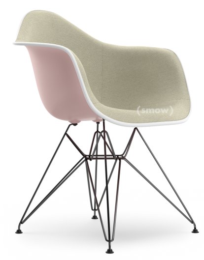 Eames Plastic Armchair RE DAR, Pale rose RE, With full upholstery, Warm grey / ivory, Standard version - 43 cm, Coated basic dark