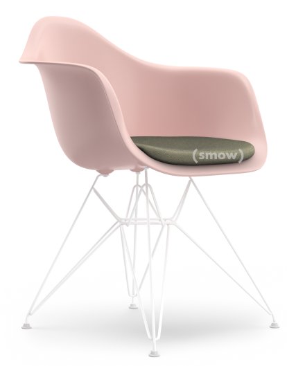 Eames Plastic Armchair RE DAR, Pale rose RE, With seat upholstery, Warm grey / ivory, Standard version - 43 cm, Coated white
