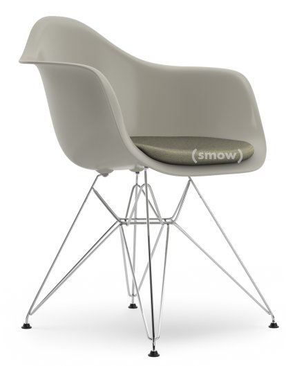 Eames Plastic Armchair RE DAR, Pebble, With seat upholstery, Warm grey / ivory, Standard version - 43 cm, Chrome-plated