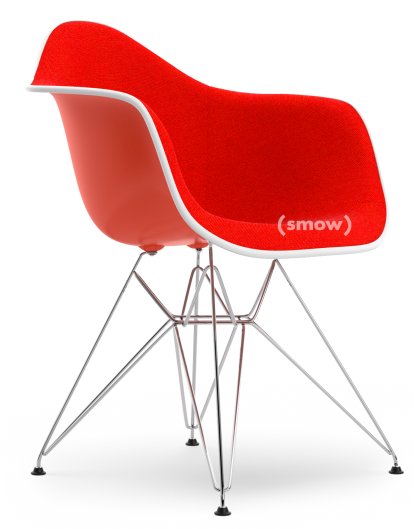 Eames Plastic Armchair RE DAR Red (poppy red)|With full upholstery|Coral / poppy red |Standard version - 43 cm|Chrome-plated