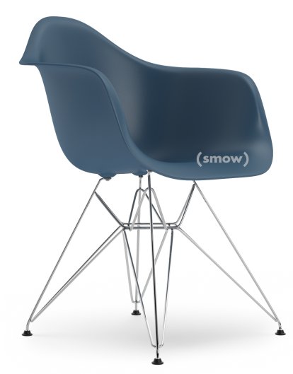 fibreglass reinforced polyester resin. In addition to its easy formability and flexibility the new material also had the advantages of presenting a pleasant feel and coming in at a cheaper price. With the plastic chair family Charles and Ray Eames also reached one of their central aims as a furniture designers "The most of the best to the greatest number of people for the least" Today, the Eames DAR, as with all the Eames plastic armchairs and Eames plastic side chairs are made from polypropylene. DAR stands for Dining Height Armchair Rod Base, which refers to a dining room chair with armrests and four-star base made of wire bracing.
