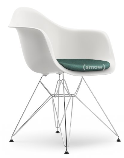 Eames Plastic Armchair RE DAR White non-RE|With seat upholstery|Ice blue / ivory|Standard version - 43 cm|Chrome-plated
