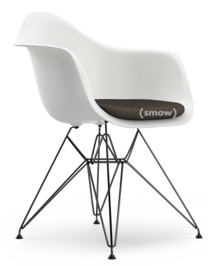 Eames Plastic Armchair RE DAR, White non-RE, With seat upholstery, Warm grey / moor brown, Standard version - 43 cm, Coated basic dark