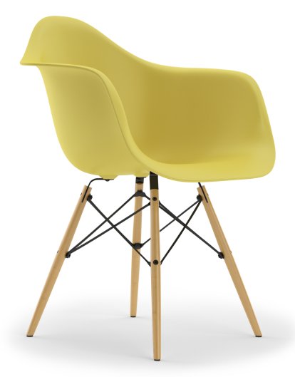 The wooden legs of the Vitra Eames DAW are stained maple. The old reddish stained version was produced until the end of 2008 and is no longer available. Since 2009 the maple wood has been stained yellow. In 2013 Vitra also released dark maple and black maple versions and in 2016 added a honey stained ash version.