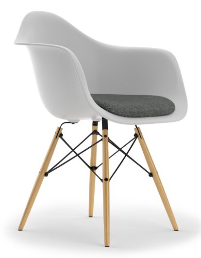 Eames Plastic Armchair RE DAW, Cotton white, With seat upholstery, Nero / ivory, Standard version - 43 cm, Ash honey tone