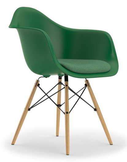 Eames Plastic Armchair RE DAW, Emerald, With seat upholstery, Green / ivory, Standard version - 43 cm, Ash honey tone