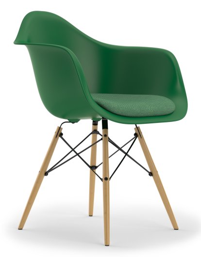 Eames Plastic Armchair RE DAW, Emerald, With seat upholstery, Green / ivory, Standard version - 43 cm, Yellowish maple