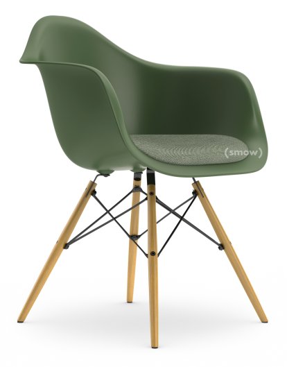 Eames Plastic Armchair RE DAW, Forest, With seat upholstery, Ivory / forest, Standard version - 43 cm, Ash honey tone