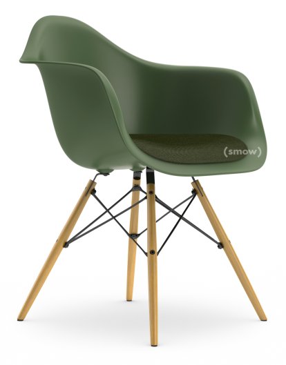 Eames Plastic Armchair RE DAW, Forest, With seat upholstery, Nero / forest, Standard version - 43 cm, Ash honey tone