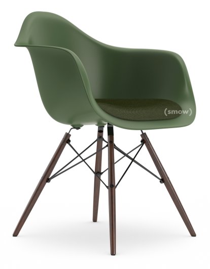 Eames Plastic Armchair RE DAW, Forest, With seat upholstery, Nero / forest, Standard version - 43 cm, Dark maple