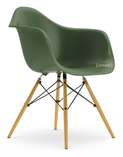 The wooden legs of the Vitra Eames DAW are stained maple. The old reddish stained version was produced until the end of 2008 and is no longer available. Since 2009 the maple wood has been stained yellow. In 2013 Vitra also released dark maple and black maple versions and in 2016 added a honey stained ash version.