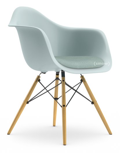 Eames Plastic Armchair RE DAW, Ice grey, With seat upholstery, Ice blue / ivory, Standard version - 43 cm, Ash honey tone