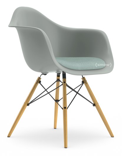 Eames Plastic Armchair RE DAW, Light grey, With seat upholstery, Ice blue / ivory, Standard version - 43 cm, Ash honey tone