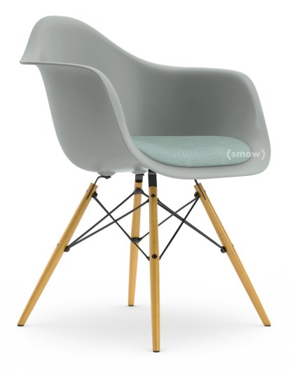 Eames Plastic Armchair RE DAW, Light grey, With seat upholstery, Ice blue / ivory, Standard version - 43 cm, Yellowish maple