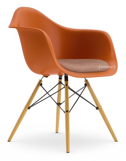 Eames Plastic Armchair RE DAW, Rusty orange, With seat upholstery, Cognac / ivory, Standard version - 43 cm, Yellowish maple