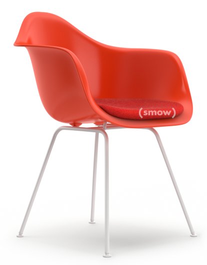 Eames Plastic Armchair RE DAX Red (poppy red)|With seat upholstery|Coral / poppy red |Standard version - 43 cm|Coated white