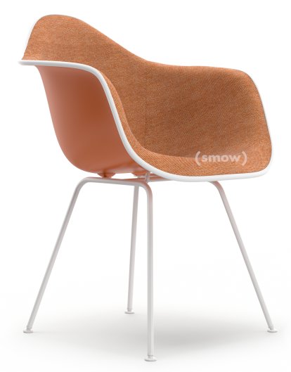Eames Plastic Armchair RE DAX, Rusty orange, With full upholstery, Cognac / ivory, Standard version - 43 cm, Coated white