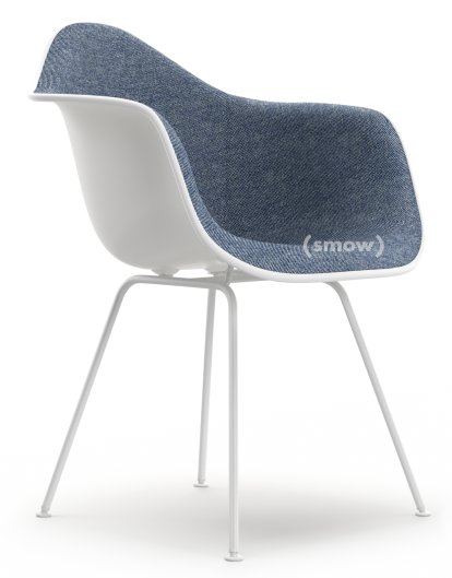 Eames Plastic Armchair RE DAX, White non-RE, With full upholstery, Dark blue / ivory, Standard version - 43 cm, Coated white