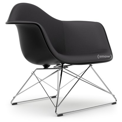 Eames Plastic Armchair RE LAR Deep black|Full upholstery dark grey|Chrome-plated