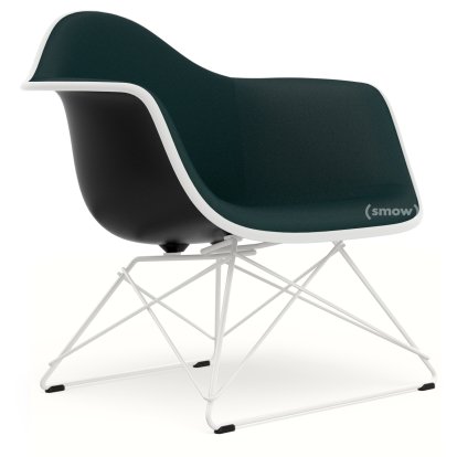 Eames Plastic Armchair RE LAR, Deep black, Full upholstery peetrol /moor brown, Coated white