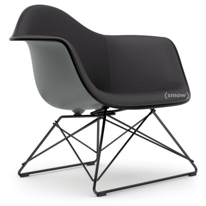 Eames Plastic Armchair RE LAR, Granite grey, Full upholstery dark grey, Coated basic dark