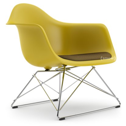 Eames Plastic Armchair RE LAR, Mustard, Seat upholstery mustard /dark grey, Chrome-plated