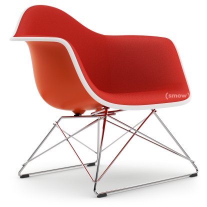 Eames Plastic Armchair RE LAR, Red (poppy red), Full upholstery coral / poppy red, Chrome-plated